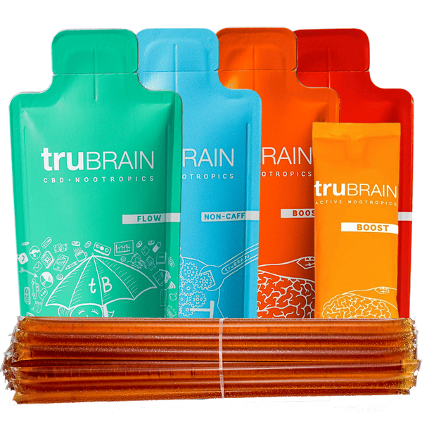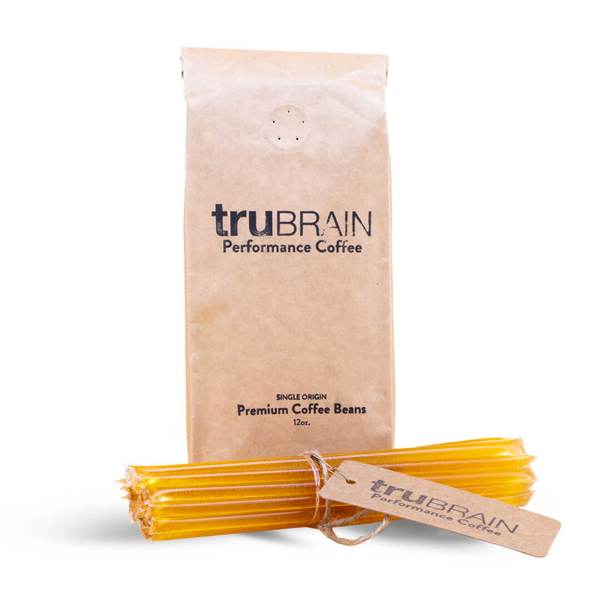 • A dynamic duo of coffee and Nootropics. TruBrain’s Coffee Kit comes with fresh roasted beans + 20 Focus Sticks of all-natural Nootropics.