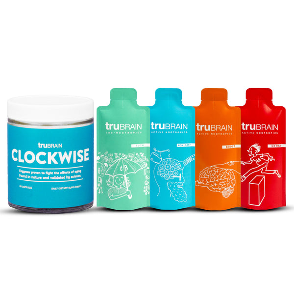 • Clockwise (30 servings) for long-term brain protection with enzymes to slow brain aging at a cellular level.